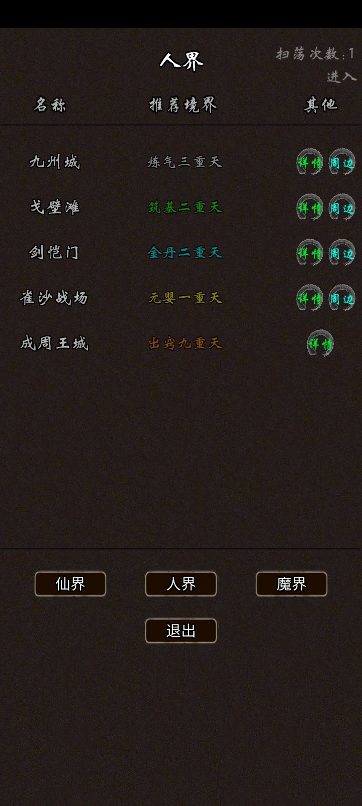 4历练,历练是指副本,分为“人,仙,魔”三界,我一一分析这些地图作用(划重点!!)