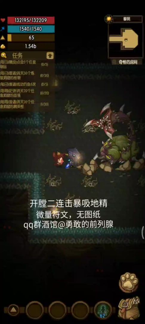 装备选择:武器:最优:裂缝高基础慢速武器,平替:魔龙刀/巴鲁。防具:最优:裂缝高血量、高防御防具(暴吸对血量有一定的需求,推荐用裂缝高血量、高防御防具),平替:洞窟内任意最高等级防具(不推荐)。饰品:词条符合即可