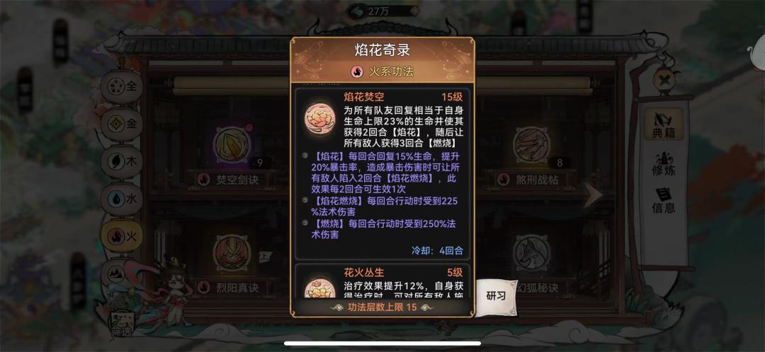 唐蝶衣的功法焰花奇录,这个技能的收益真的高,集奶,输出,增益于一身。当然也有致命缺点,这点留到唐蝶衣那章细说。
