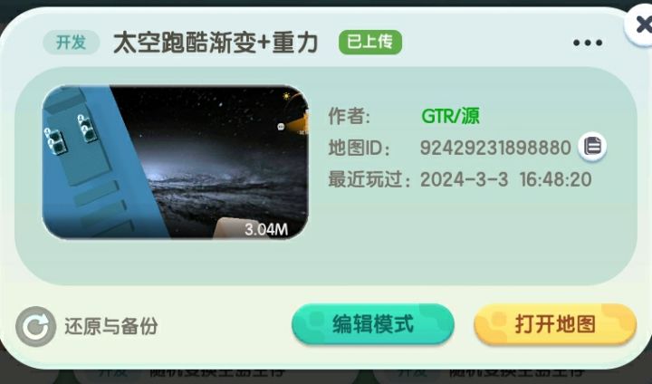 太空跑酷是我随手弄的,觉得那个背景挺好看所以做的。那个地图打开非常不错。