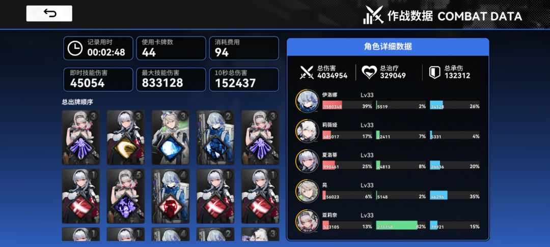一技能切后(30%概率0消耗,一破后有重伤效果,增伤15%),二技能隐身和自己加攻,又是蓝牌能配合滑雪仔回血,开大后可以和夏洛蒂和莉薇娅的低费红牌配合打出高额全体伤害。而且伊洛纳牌库都是低费牌,不卡手。