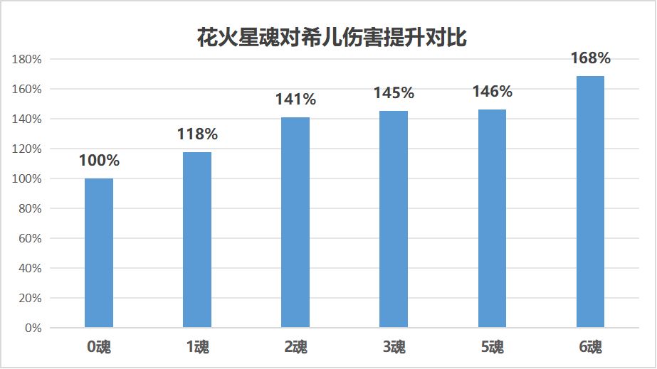 同样在量子战舰队伍中为例,以花火带游戏尘寰时,0+1希儿的伤害100%作参考花火不同星魂时,希儿的伤害对比如下: