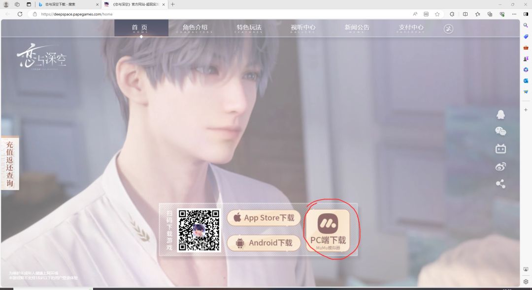 1.使用电脑搜索进入恋与深空官网,点击PC端下载