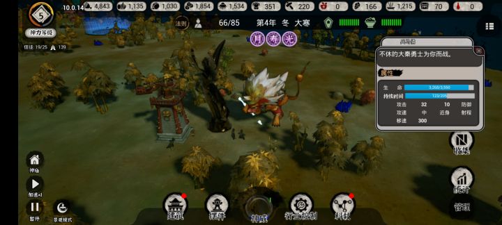 打年兽 树神 山神:兵马俑要选,开局用大加速卡建个神兽台,蚩尤哪里激活玄甲,领他的神兽卡,有就领多的还能轮回刷其他卡,建兵马俑,可以用移动资源拿大的石材和矿直接放兵马俑里,木材靠村民搬,争取开局第4年内把兵马俑做好(在有个剑冢就更好),要留有300劫运买战斗不休,这样才能刷出3个兵马俑,用小加速卡给地图四个角附近各建一个神像建筑(耐久有一万点)里面点在建个箭塔,年兽都是在四个角附近出现,会先攻击最近神像建筑,收到攻击提示后点过去,就可以放神兽玄甲,年兽就会转移目标打玄甲,玄甲能撑55秒,够3个兵马俑赶过来,就这3个兵马俑就能一直拖住年兽,在配个箭塔慢慢杀。