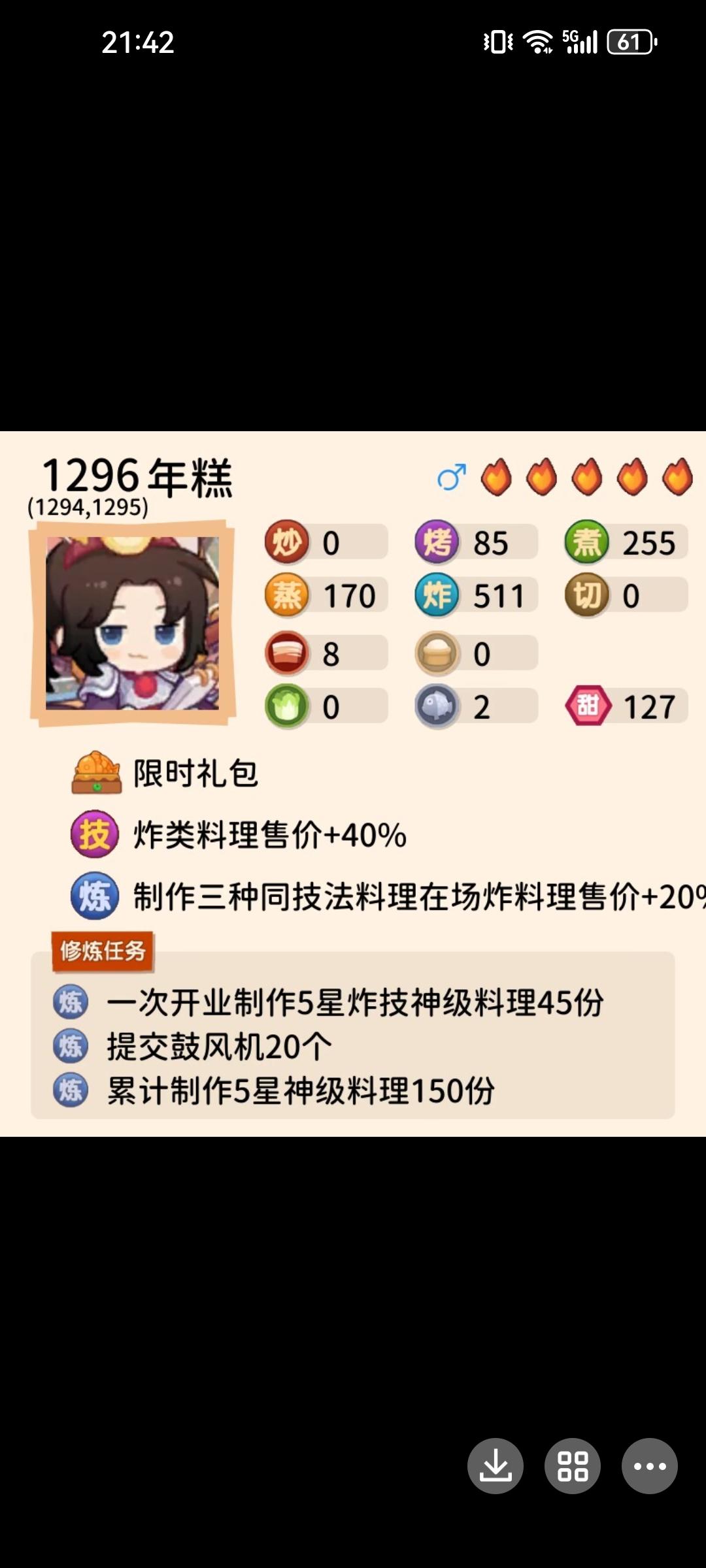 一,技法类 双环-荧菲菲,65切+25蒸。潼年年-50炸+50煮。静静谛听-40烤+40蒸