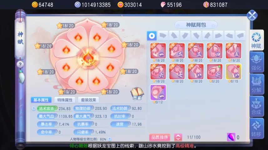 冰傲天:目前能满的基本都满了,15精灵全满,紫简差一件,三星多的用不完,神赋只有强化18、19。