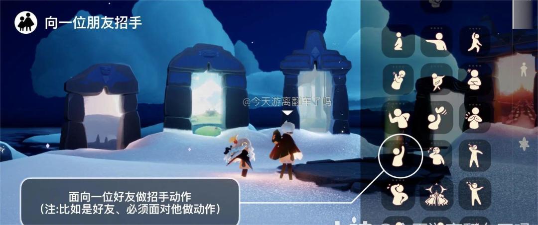 「向一位朋友招手」面向好友做招手动作