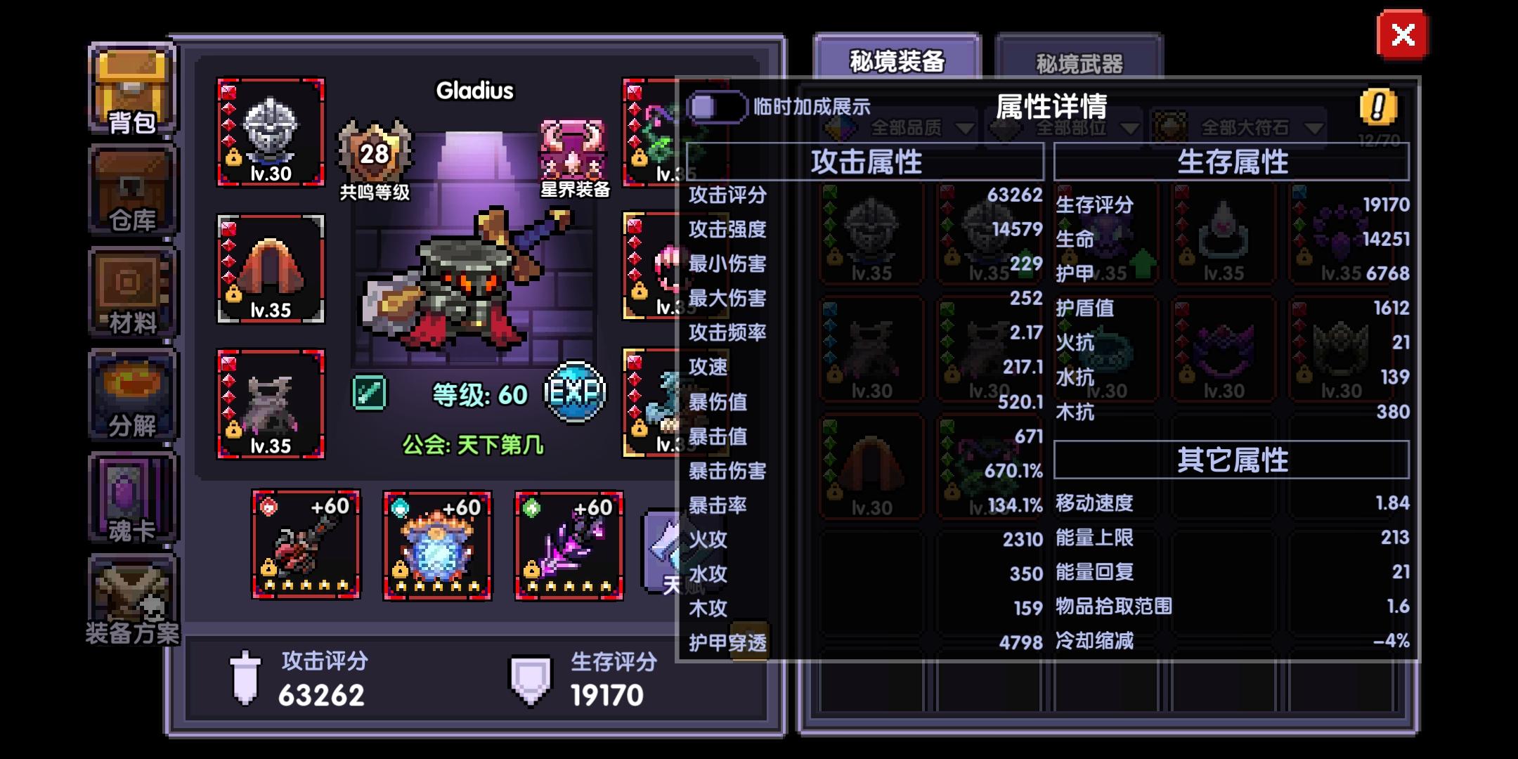 加特林的三个bd,目前我唯一能打满地宫的就是火力6件套,戒指换个剜心者指节,打完剩余8~13秒的样子