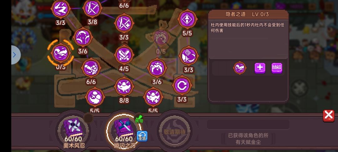天赋二:萌新可以花费三点把1.5秒无敌点出来。