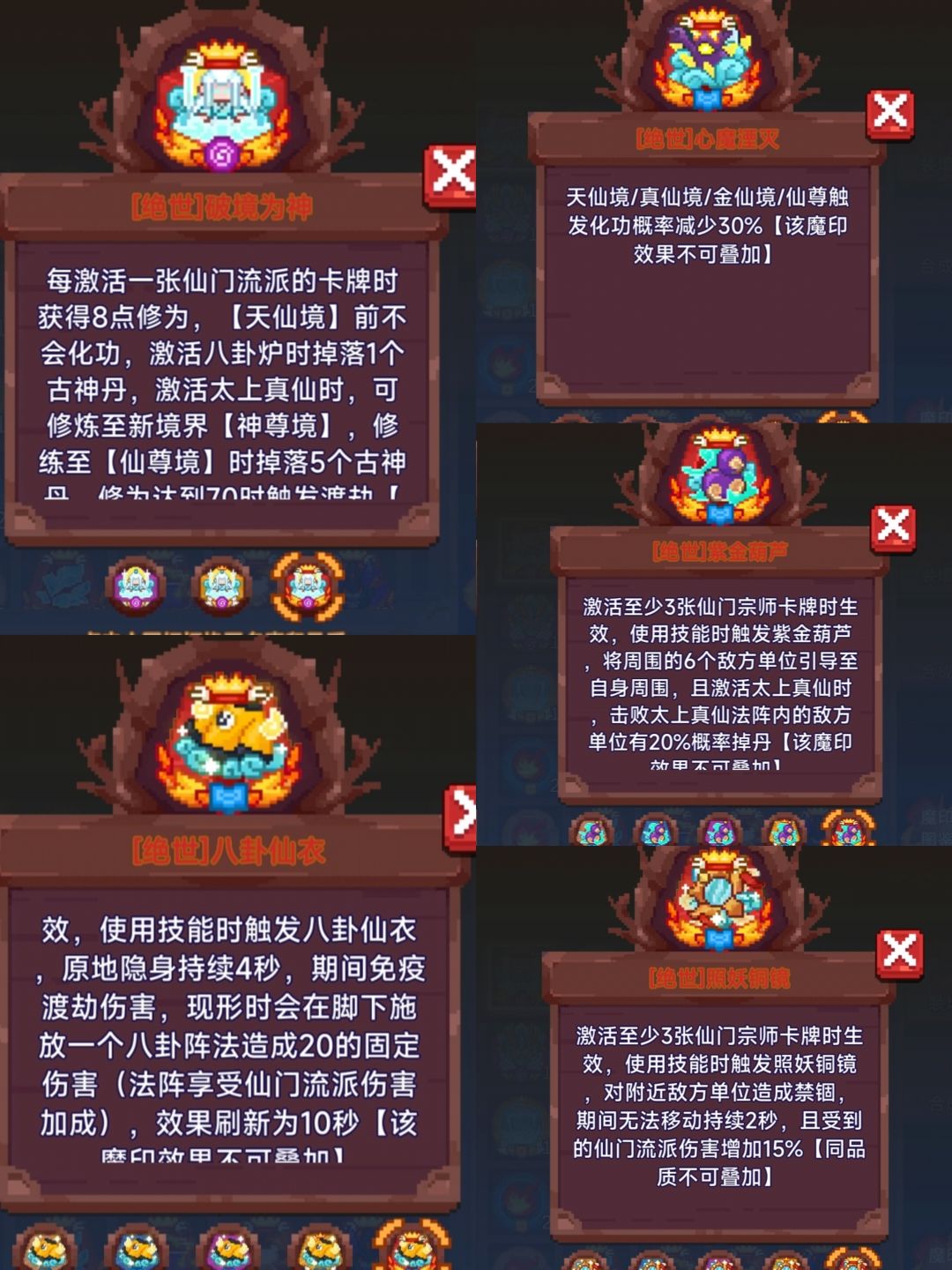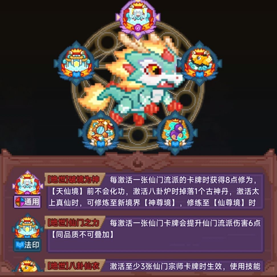 (3)仙印改版后更新一套炼丹化身卡组,修炼至真仙激活太乙仙雷阵法没问题也不太耽误时间。推荐:只有【破镜绝世品质】的萌新使用此套卡组。