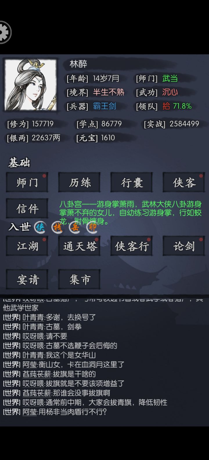 测试服玩家,最近才发现游戏公测了就回来玩了个武当,努力sl了一下,14岁7月就进八卦挂了红,目前通天卡37。实在无事可做了,发个攻略,不喜勿喷