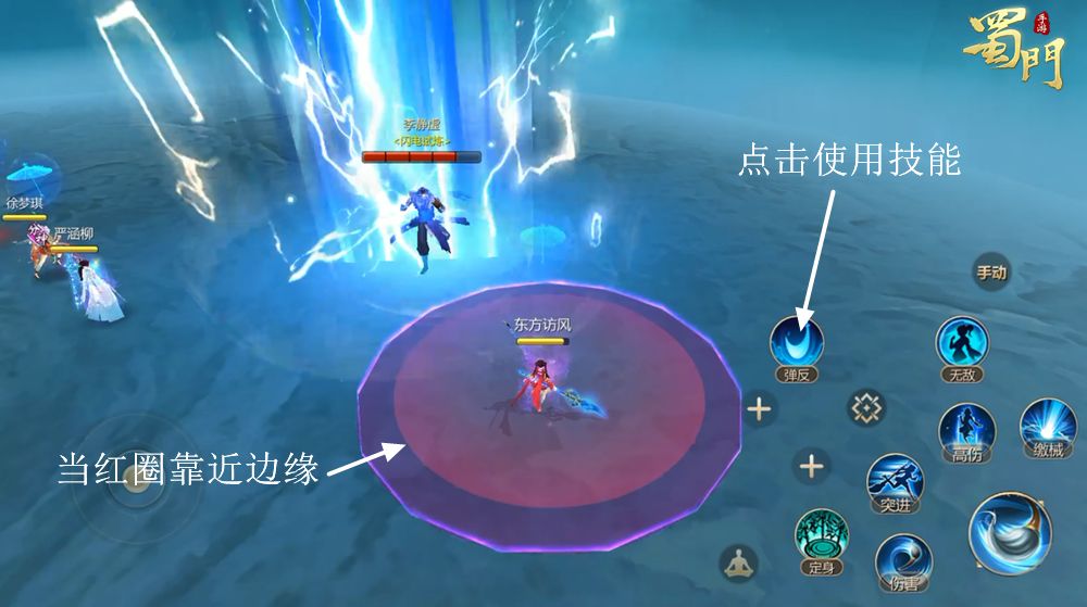 技能效果:李静虚在其身前数米位置发动圆形攻击预警,预警结束后对周身造成一次大范围的伤害,同时麻痹命中玩家数秒。