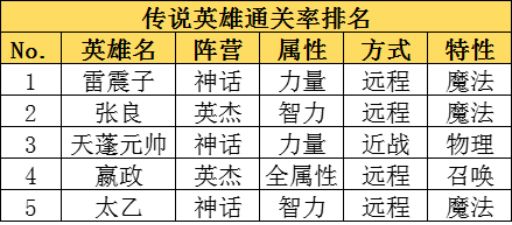 作为英雄中的终极力量,传说英雄的登场往往可以起到左右战局走势的作用。