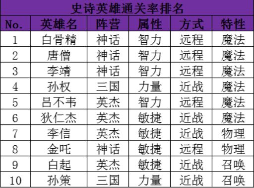 本文将根据全体召唤师大人的数据分析,提供2-10关卡中各品质登场英雄的通关率排行,希望能为召唤师大人在倾斜培养资源时提供一些参考。