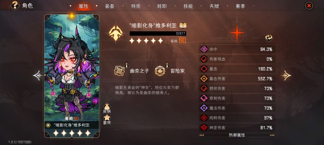 玩过暗刺的都知道,暗刺的命中是致命伤,当我们而幽奈之子却并没有这个烦恼。命中面板高达80+,全伤稍微比暗刺低一点,毕竟天赋问题。