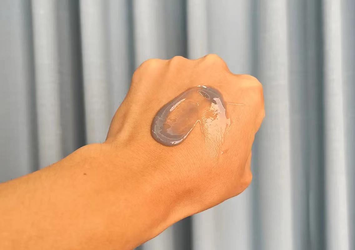 灰黑色洗发水质地,有流动性,推开不可拉丝,也没有颗粒磨砂感。