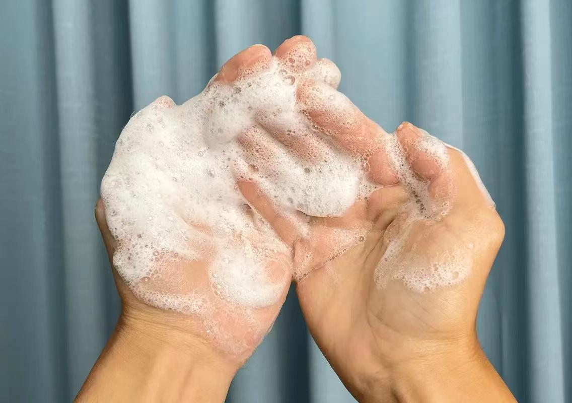 加水徒手揉搓,容易起泡,泡沫较为丰富。