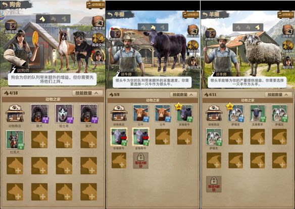 在目前的宠物系统之中,游戏内存在着狗子,牛牛和羊三种宠物,它们在希望镇中各司其职。