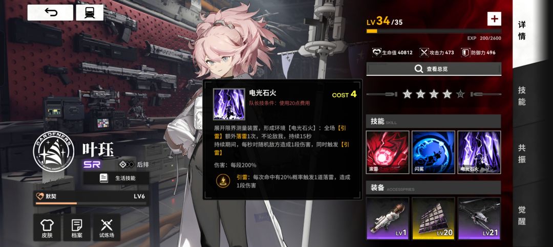 队长位叶珏:双倍雷电计数,激活条件简单,只需要20点能量消耗,雷域加成敌我不分,注意携带奶妈