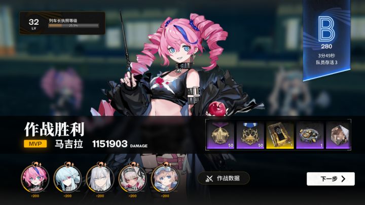 练度极低,共振全是第一二阶段的没有超过共振三的,装备全是十级左右除了前排两件20级肉装 两件ssr输出装30级。死了两个sr是打到后面boss一个群伤aoe没练度没装备扛不住暴毙了,不然就a了。