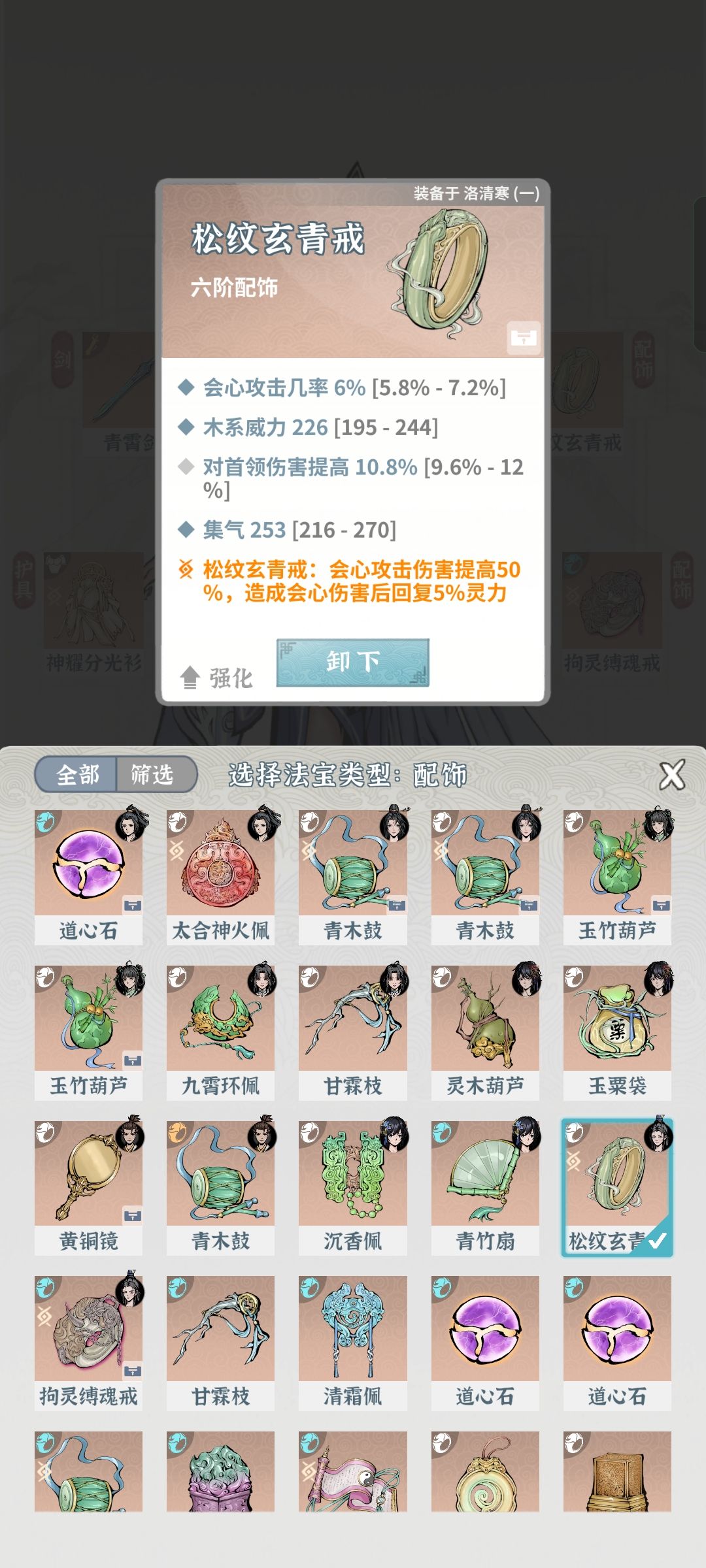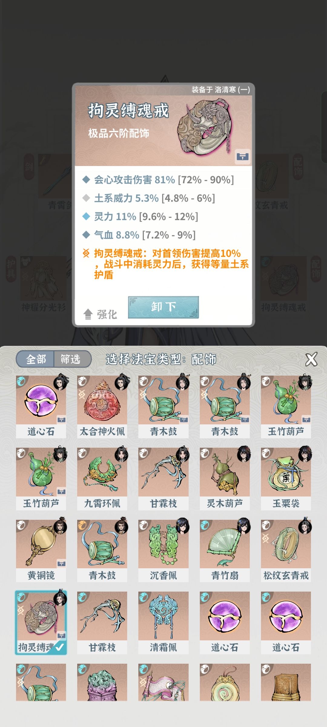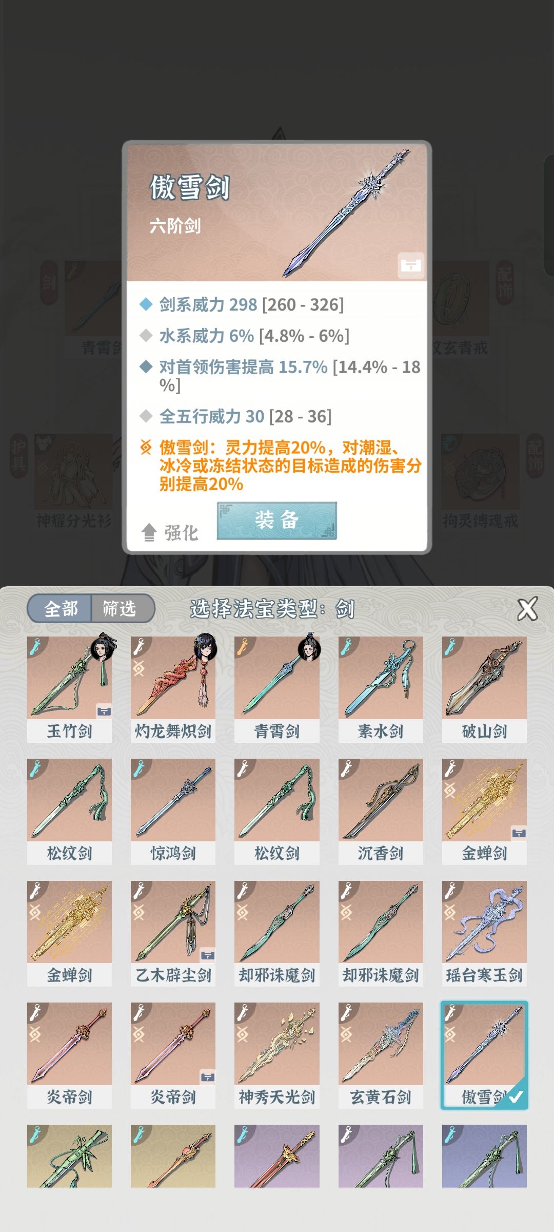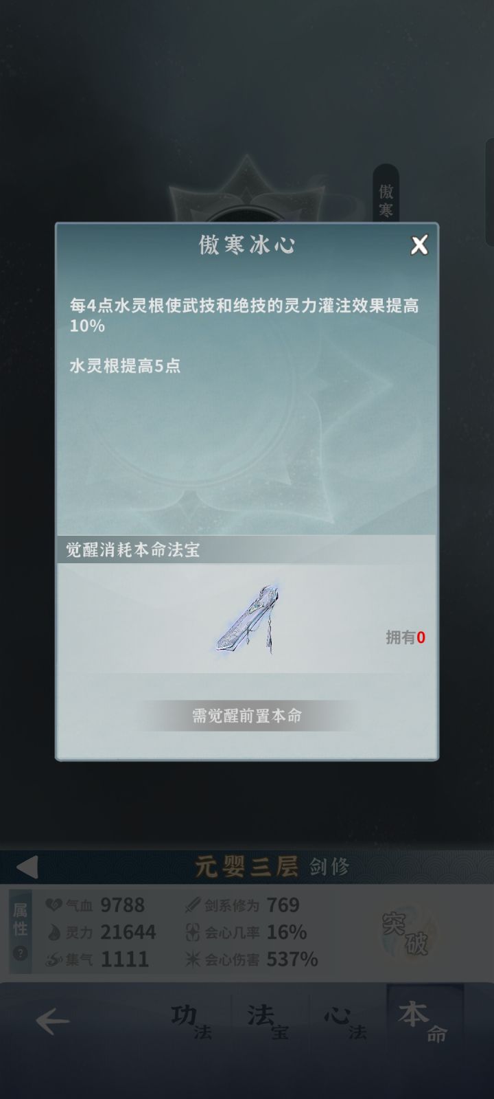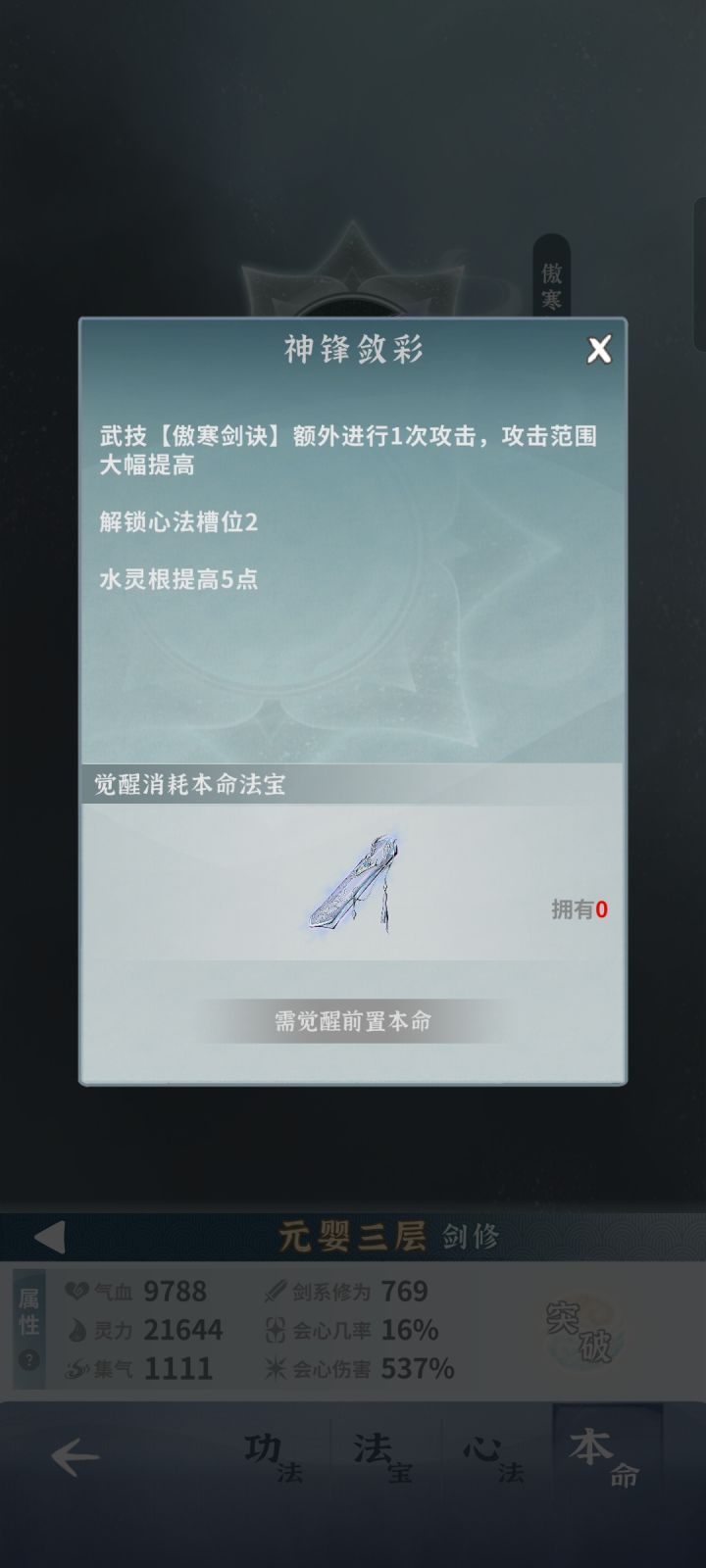 由于这个游戏最关键的本命法宝没办法重置,导致出来的新水剑我是只能看没法养。