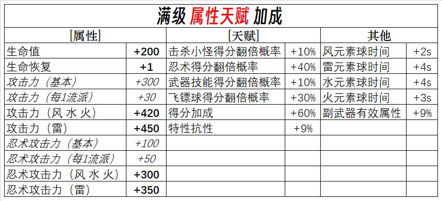 忍3 属性加成效果总览(3.8更新)