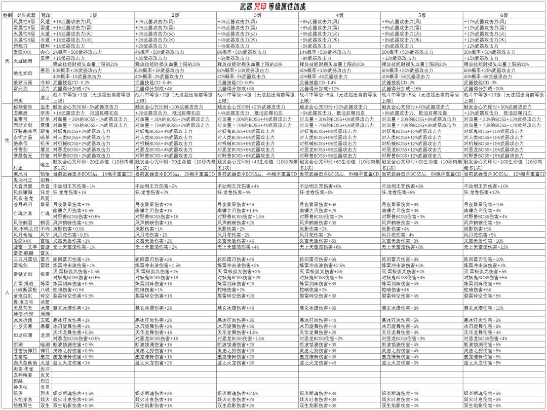 【武器咒印等级属性加成】
