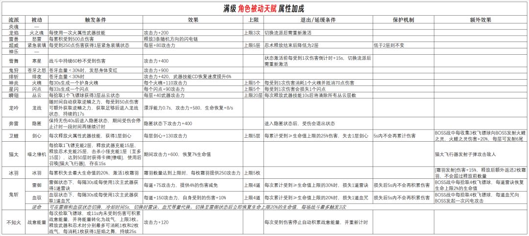 3.一些忍忍平时可能对忍者的被动天赋描述感觉比较混乱,我这里将其描述分成了6个部分,这样看可能会清晰一些;
