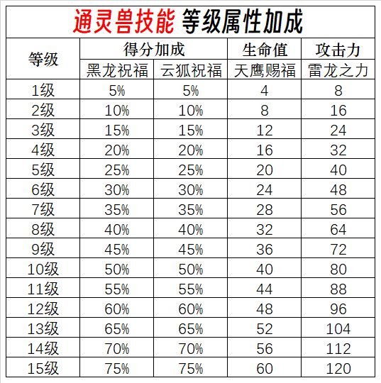 【通灵兽属性加成】
