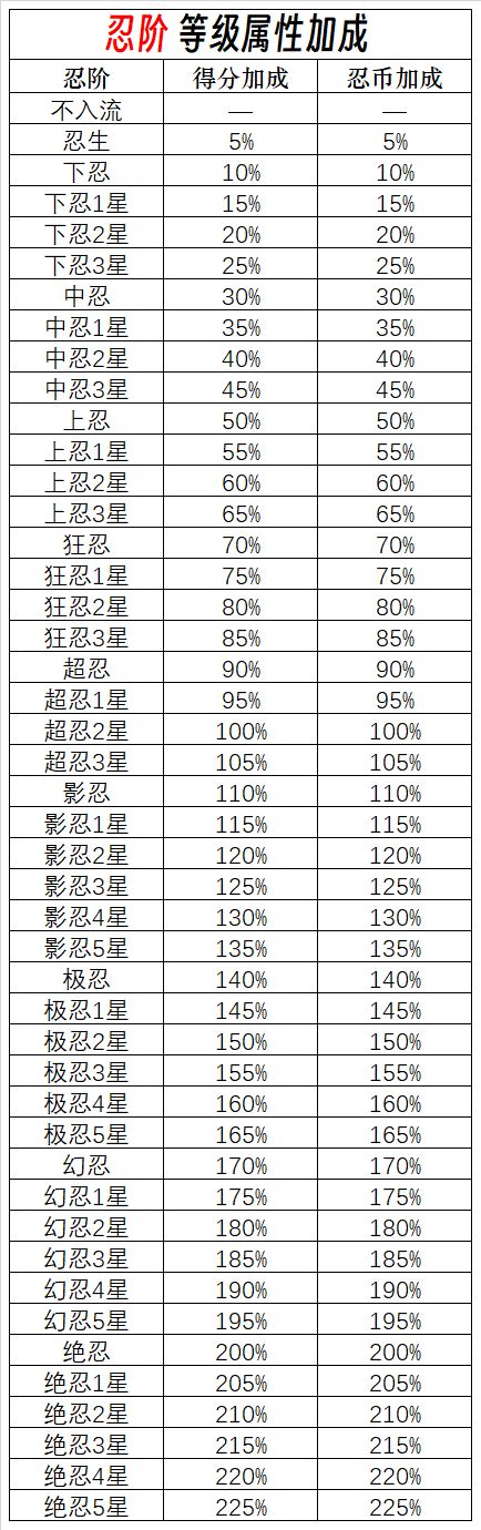 【忍阶等级属性加成】