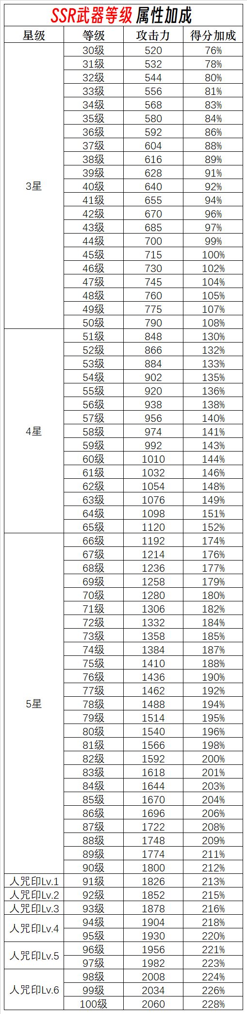【SSR武器等级属性加成】