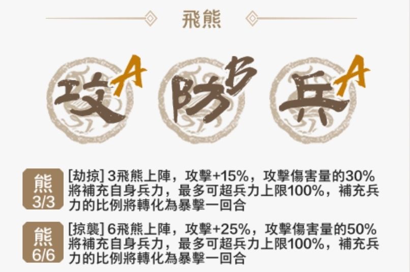 攻擊/血量較強。防禦一般。多配AOE/騎兵/盾兵。
