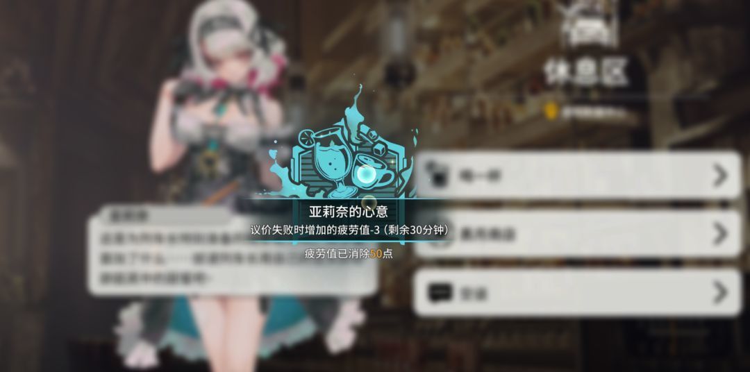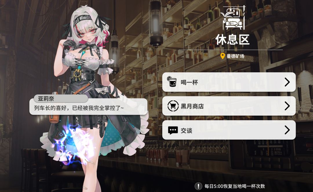 -世界上每个【亚莉奈酒吧】都能每天【喝一杯】银枝气泡水,减少列车行驶后产生的疲劳度,同时获得30分钟随机的贸易相关buff。