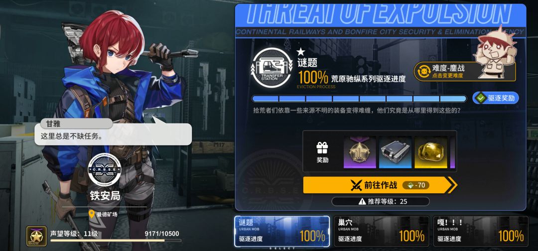 -功能评价:【曼德矿场】铁安局的驱逐任务能掉落【SR铁盟阵营装备】,但效果都不算强力,仅推荐在这里刷需要的【SSR材料】。