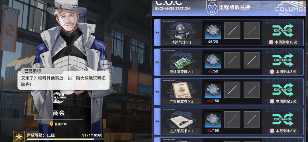 -推荐兑换物品:【一般武装改造凭证】/【特殊武装改造凭证】/【进货采买书】/【广告投放券】/【追加注资申请书】/【胡尔顿气球】