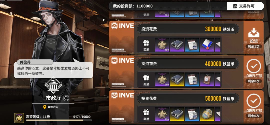-通过一次性投资,获取【城市声望】/【装备箱】以及各种【贸易相关道具】奖励。