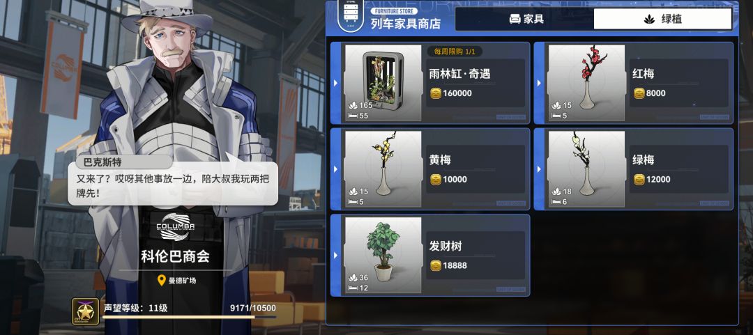 -功能评价:买【家具】的地方,游戏中后期资金充裕时才会购买,各地家具商城上架售卖的家具有部分不同。家具会根据类型提升列车的【舒适度】/【绿植评分】/【水族评分】,这些都会影响客运时的乘客收益。