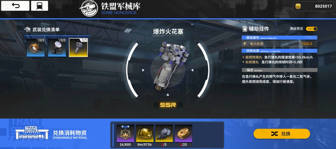 -功能评价:每种装备都有用,个人推荐爆炸火花塞,各位列车长在中后期按照自己需求造出对应的装备即可。
