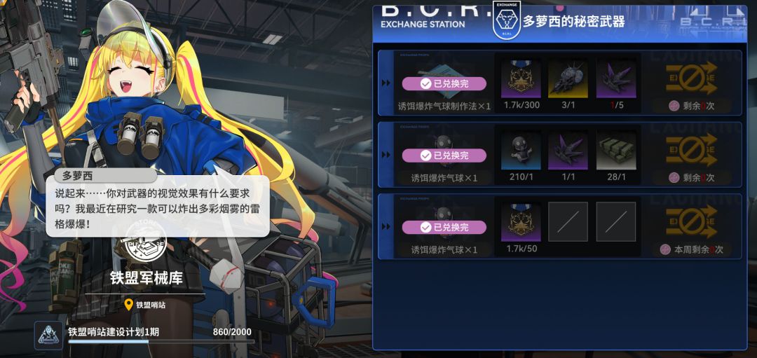 -推荐兑换物品:【一般武装改造凭证】/【特殊武装改造凭证】/【进货采买书】/【广告投放券】/【追加注资申请书】/【胡尔顿气球】