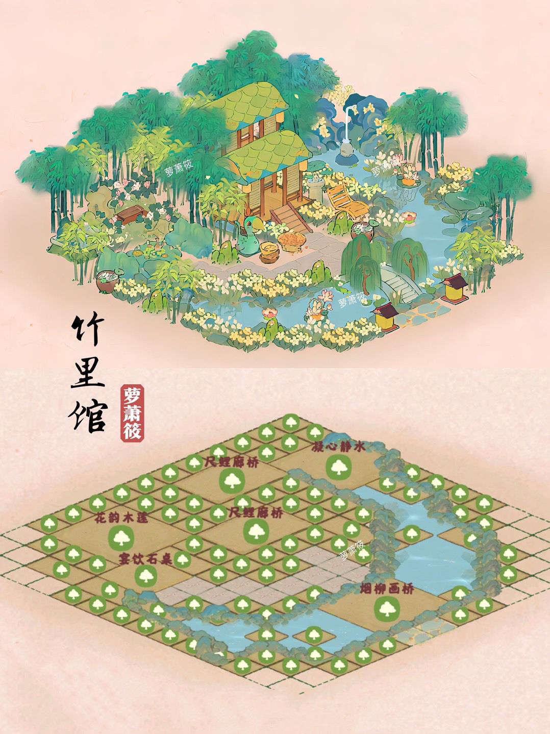 桃源丨「竹里馆」+「烟柳画桥」节气布局(可抄录)