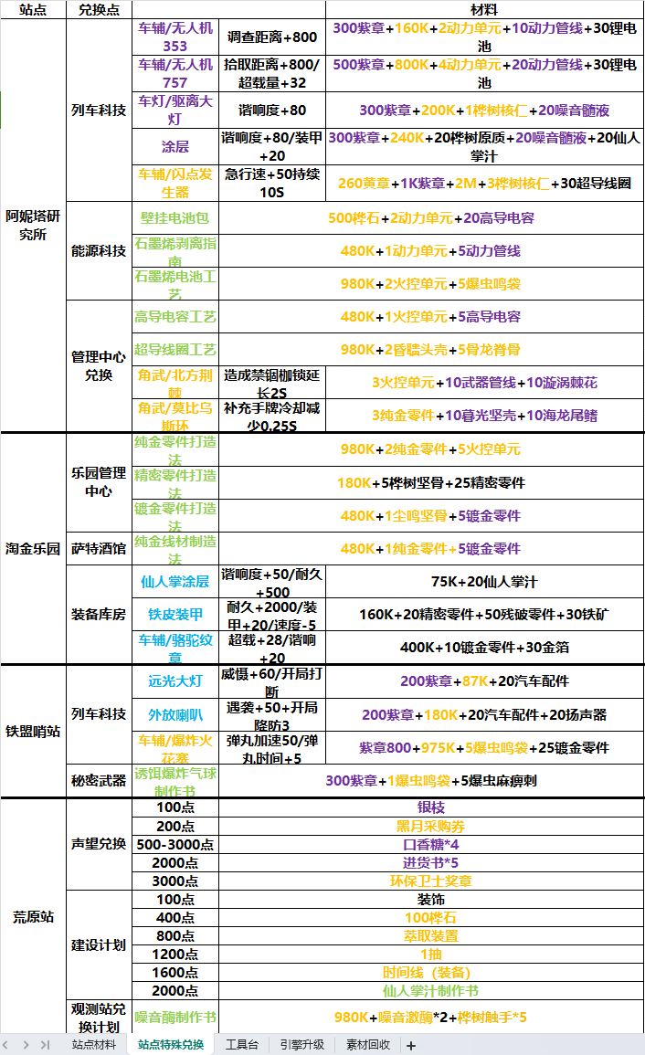 各材料掉落,兑换,升级表,已上传腾讯文档编辑,哪里缺失不对都能改