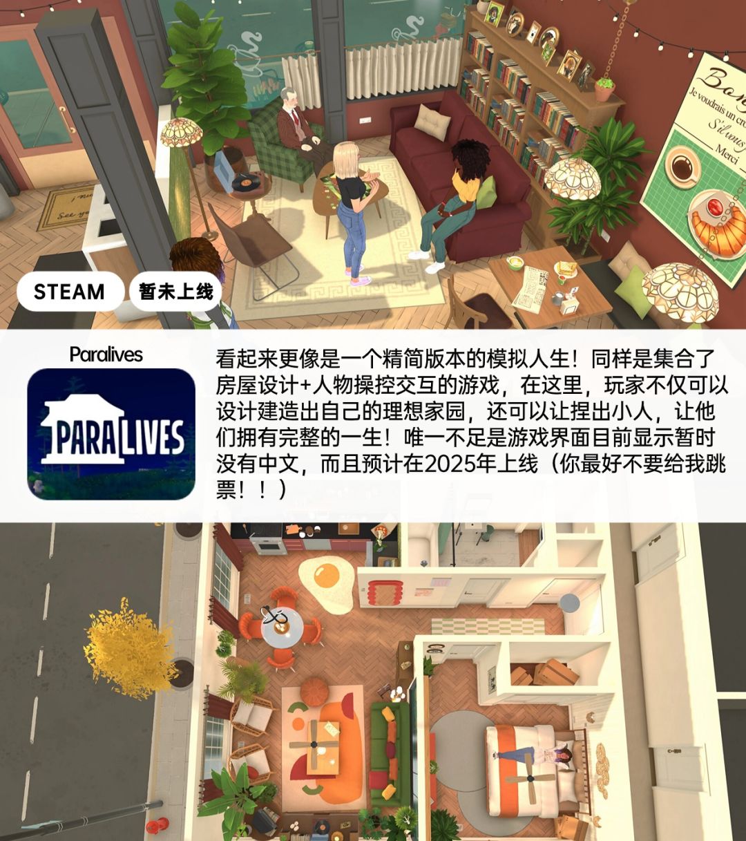 你的下一款模拟人生,又何必是模拟人生!!这个玩法而是经典的Sim式模拟过日子了,从房屋搭建,设计到人物在其中的居住生活,但情报上来看,体量不会像Sim系列那么大,更像是在房子里生活。预计2025上线。