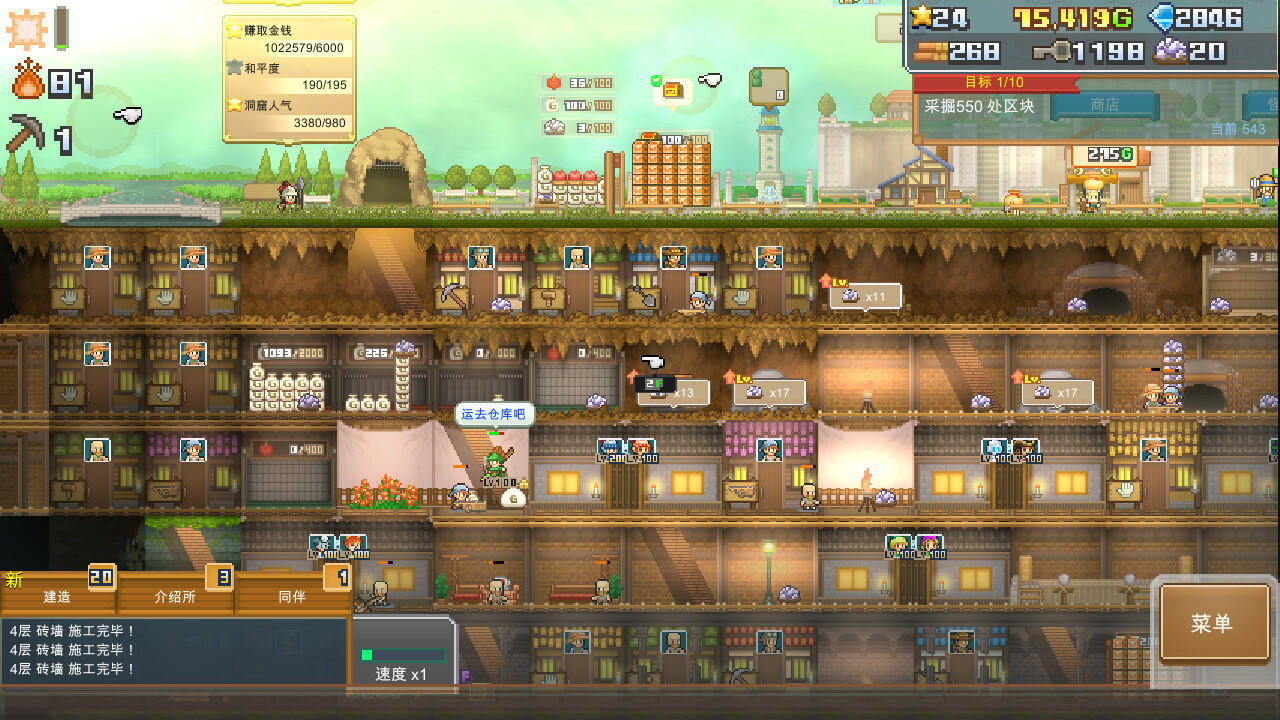 早晨登场的是采掘队伍!全力以赴对洞窟进行挖掘和建造。