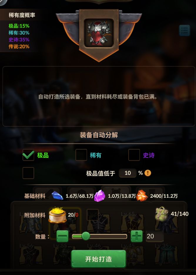 然后进锻造台造80级盔甲,如图,一次批量造20个,再挨个看属性。