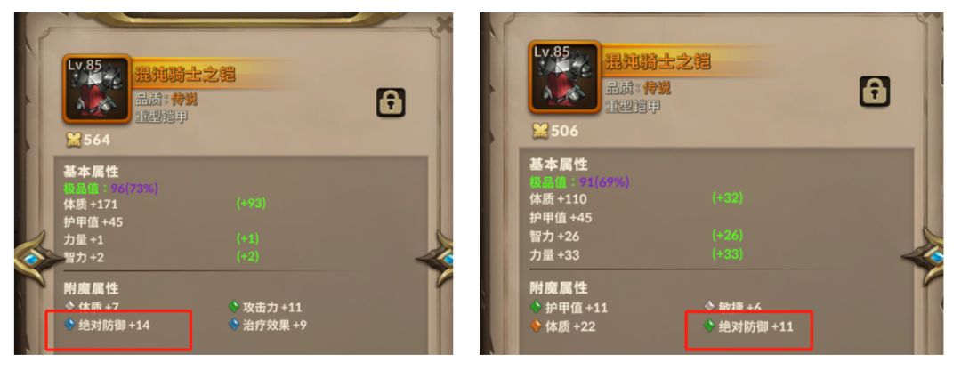 蓝装只有2条附魔,如果其中1条是绝对防御,那就有50%的概率选中。 如果是橙装,4条附魔属性随一条,概率就只有25%。 所以底材用蓝装是更好的。