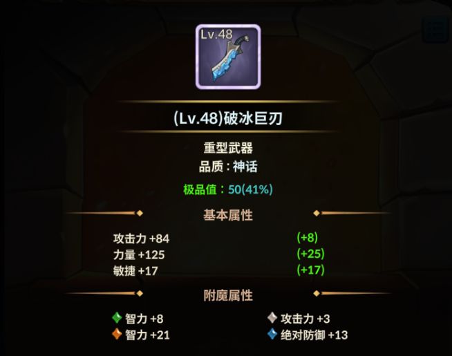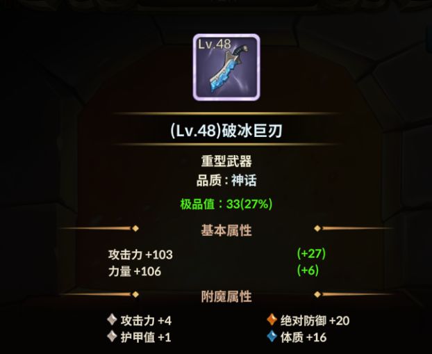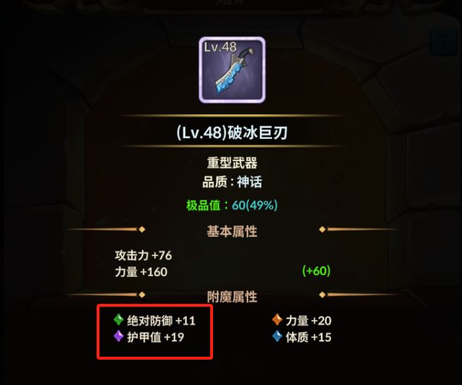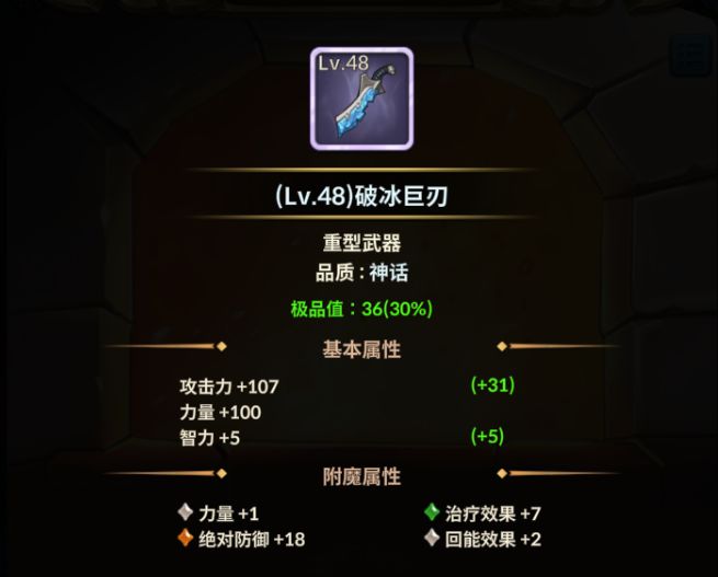至于为啥要用【破冰巨刃】,是因为它是低级武器里面,天生力量最高的,最适配圣教军坦克。