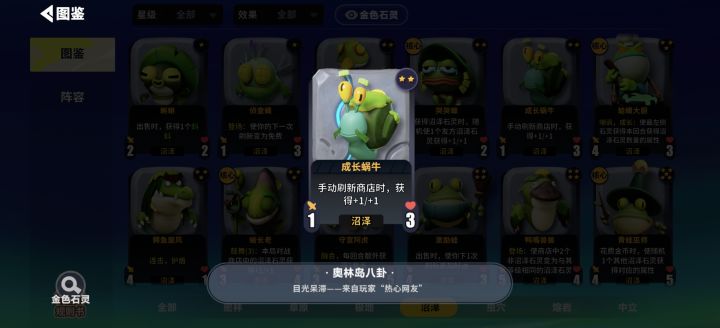 比较有欺骗性的就是哭哭螈和青蛙巫师了,看似也有成长属性其实是比较废物的卡牌了。