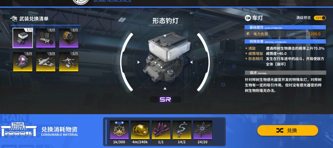 -功能评价:两种【配方】必换,但是BOSS【混厄石芝】目前没实装。需要消耗桦石制造的列车家具【阿妮塔挂壁电池包】看需求兑换,毕竟500桦石说多不多说少也不少。