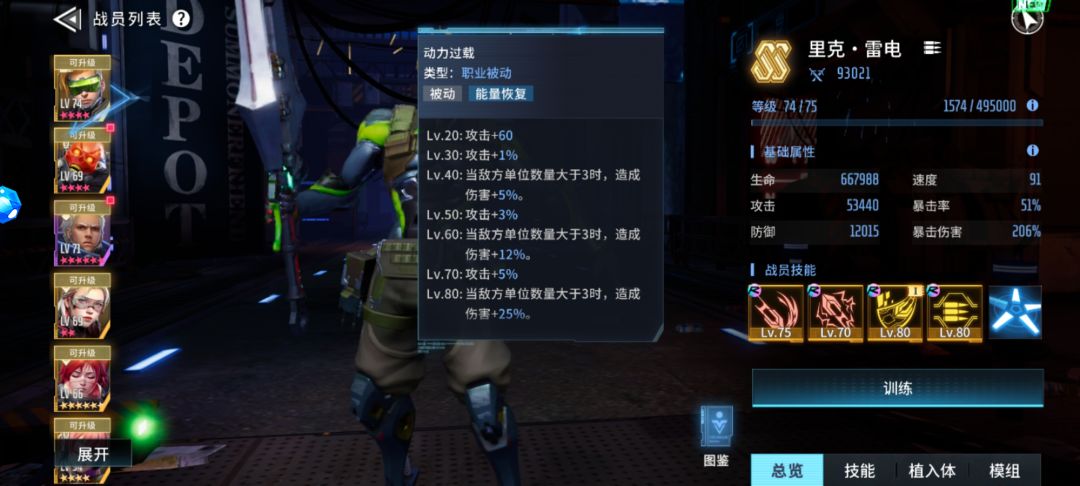 1.技能装配,给破坏主c的被动和大招装上80级技能,有较高的伤害加成。主要输出植入体也全给破坏角色,其次是埃里克,大招给上60级完美编码就行。