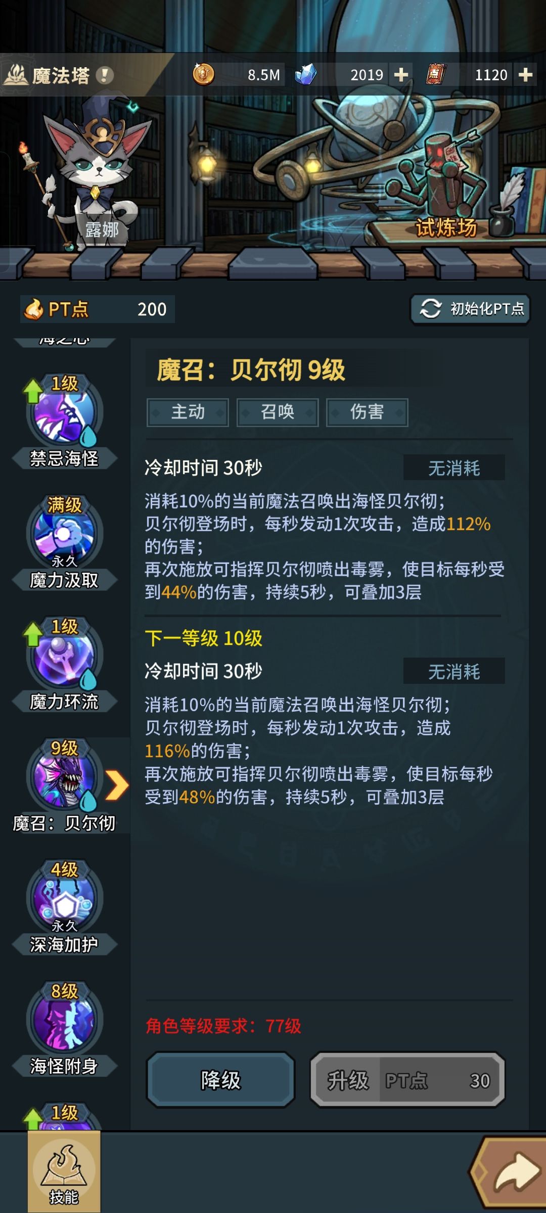 比如说现在剩余600魔能 召唤贝尔彻就会是600魔能的%10也就是60魔能 有个技能是魔力摄取 击杀怪物会获得60点魔能 所以说可以无限召唤贝尔彻 快速刷怪